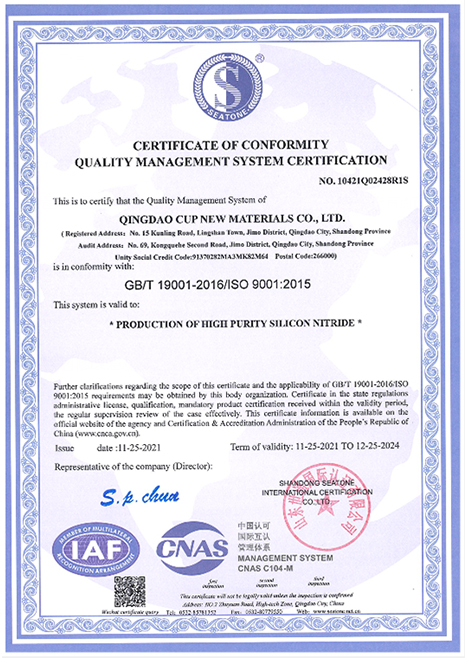 公司对标国际先进粉体生产厂家标准,实现了原料仓库、生产车间以及成品仓库的洁净无污染。 公司拥有成套的质量控制体系,实现了从原料进厂到产品出厂全部环节的原材料、中间品、产成品的 指标检验控制,达到产品出厂合格率100%。